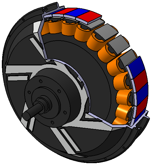 Der Motor ist axial kurz, also scheibenförmig und die Kupferspulen lassen sich gut in einen Kühlkörper integrieren.