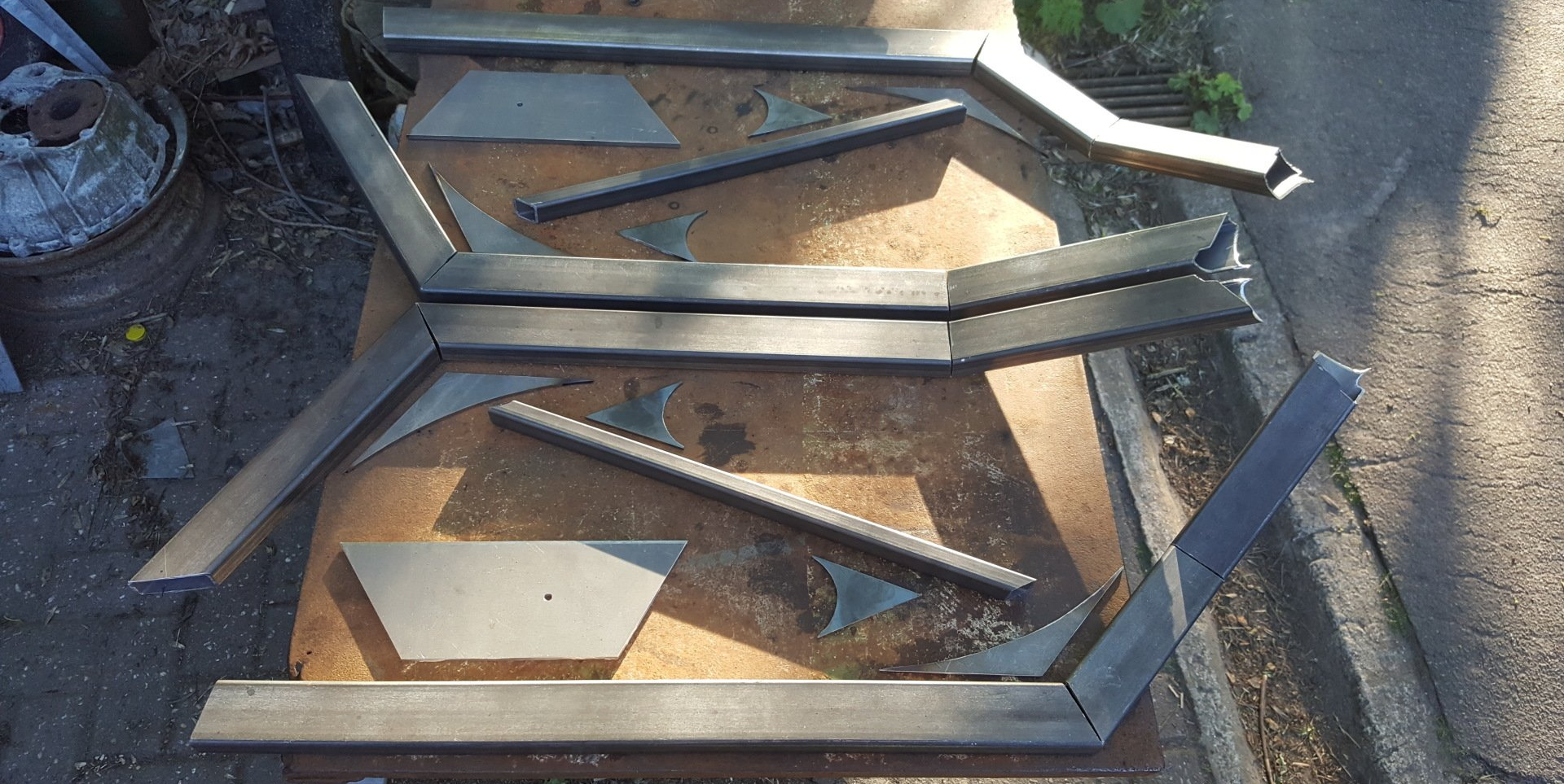 Des weiteren wurden Knoten- und Trägerbleche ausgeschnitten und die oberen Enden der Holme an die Geometrie des Lenkkopfes angepasst.