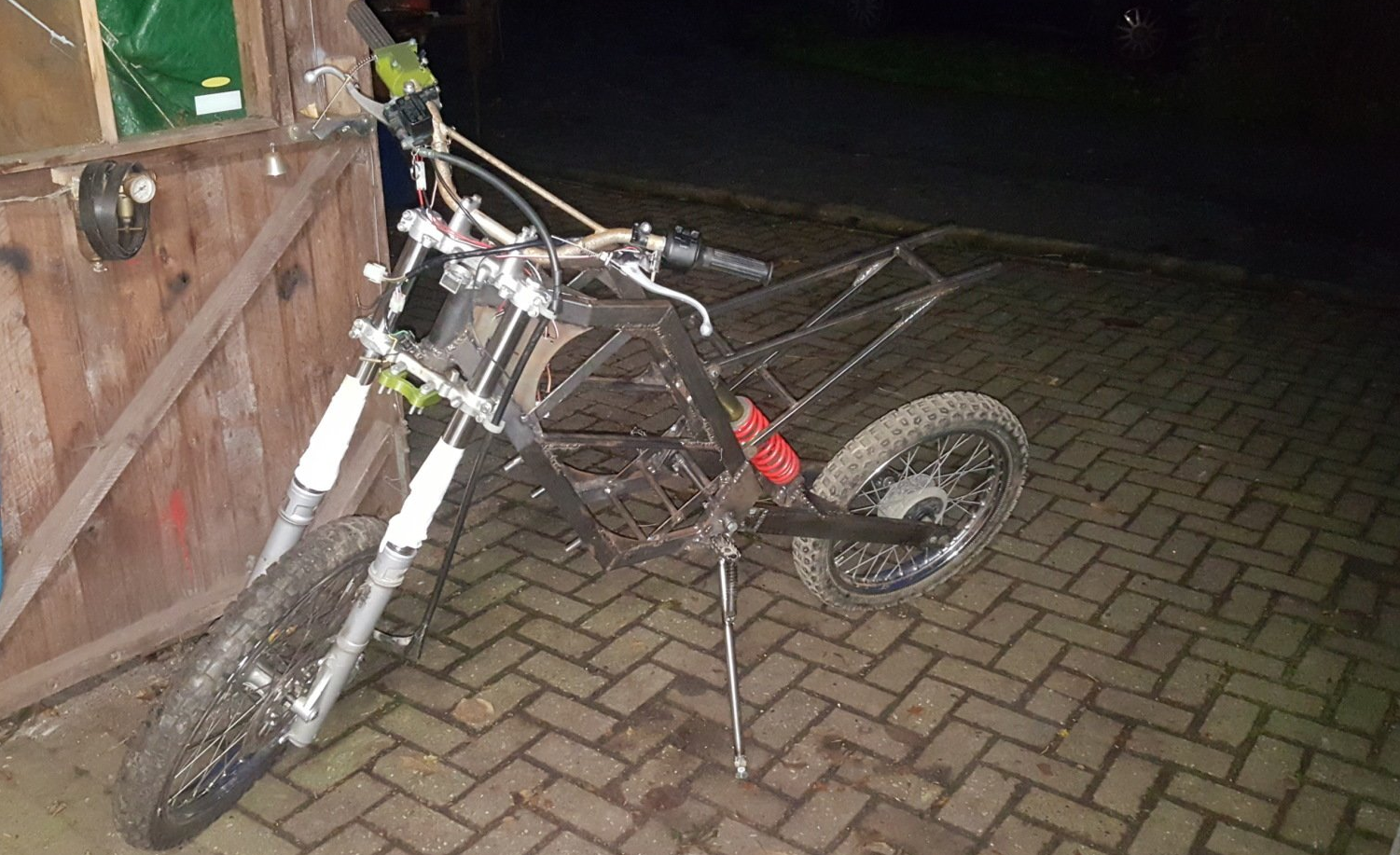 Auf die Entwicklung des Stromgriffes folgte der Bau des Seitenständers, um die NTRX auch ohne den bis dahin verwendeten Motocrossbock abstellen zu können. Mit Rücksicht auf TÜV Vorgaben wurde darauf geachtet, den Seitenständer zum Einklappen mit einer Doppelfeder auszurüsten.