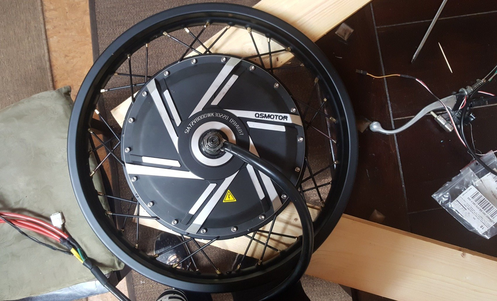 Nach mehreren Wochen Wartezeit, in der mir fast die übrigen Aufgaben ausgegangen wären, kamen dann endlich die maßgefertigten Speichen, um den Motor in die dazu vorgesehene DT 125 Felge einzuspeichen. Leider stellte sich schnell heraus, dass dazu sowohl am Motor, als auch an der Felge einige Änderungen vorgenommen werden mussten.