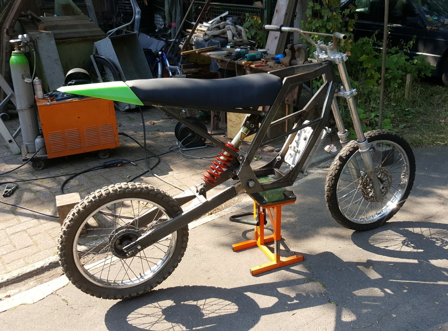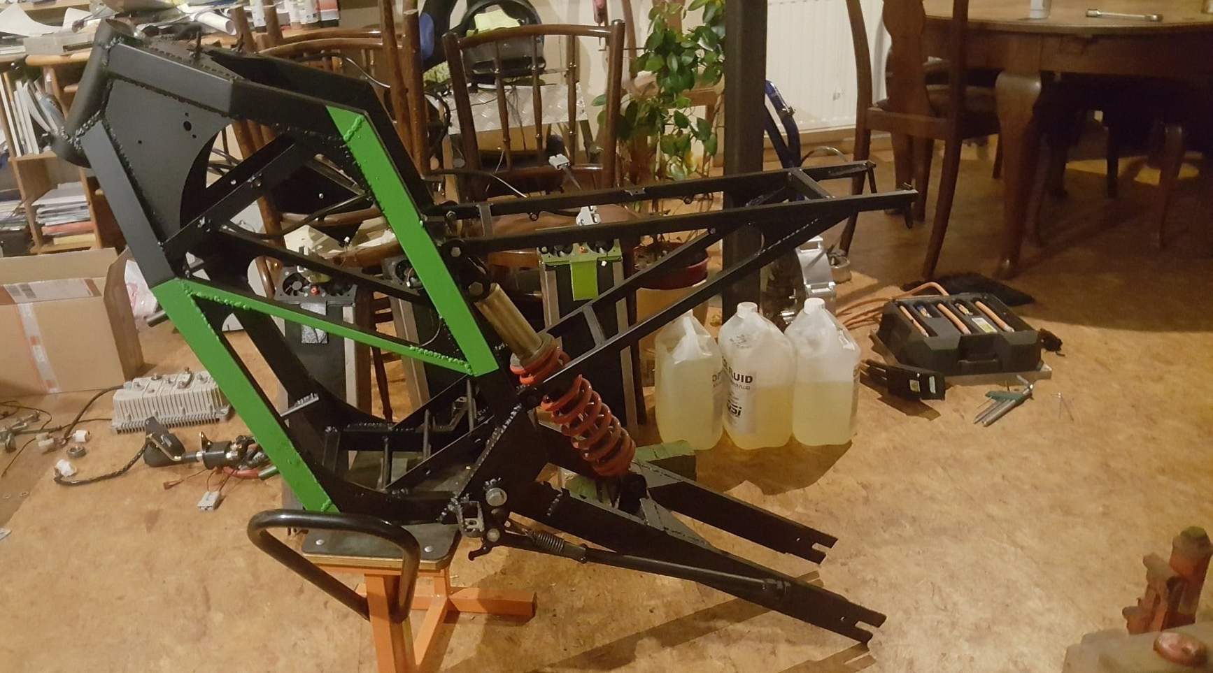 Ergänzt wurde das Basissetup durch ein LCD Kombiinstrument, 12V Spannungswandler, ein Ladegerät mit 1,8 kW Ladeleistung, diverse elektronische Komponenten für die lichttechnischen Einrichtungen sowie Stahlhalbzeuge für den Rahmenbau.
